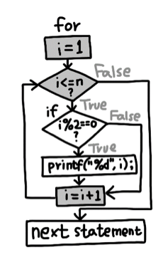 for(i=1; i<=n; i++) //1부터 시작해 n까지 1씩 증가시키면서 반복한다.