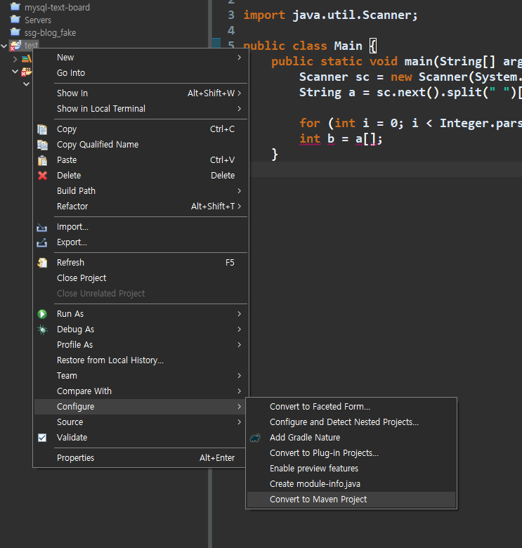 - Configure >> Convert to Maven Project 클릭