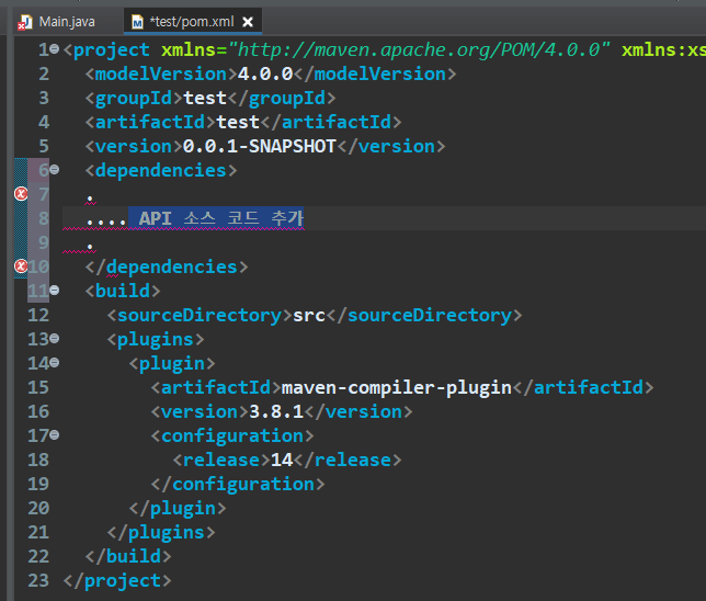 메이븐 프로젝트(maven project ) 적용 후 API 라이브러리 추가