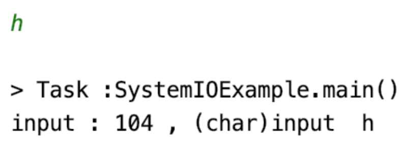 System.out.println("input : " + input + " , (char)input " + (char)input);