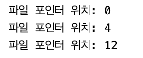 내부적으로 파일 포인터를 사용하는떼, 입출력 시에 작업이 수행되는 곳이 바로 파일 포인터가 위치한 곳이 된다.