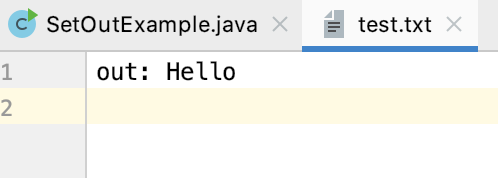 System.out.println("out: Hello");